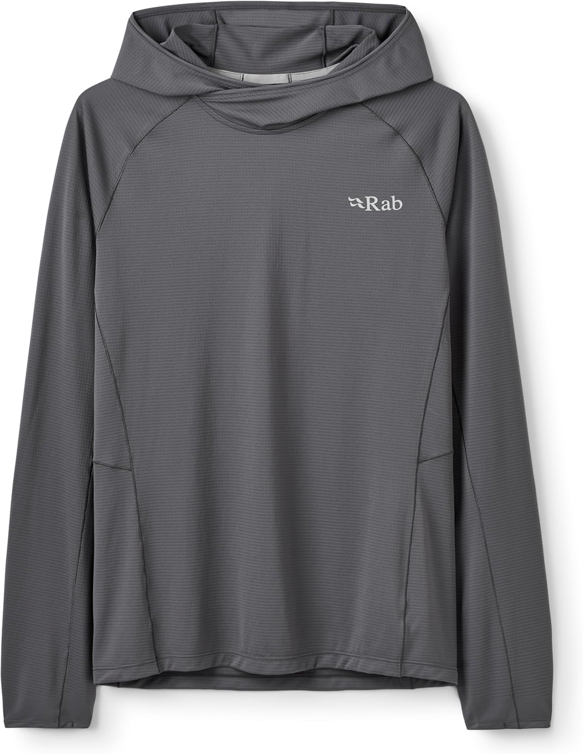 Rab Men's Sonic Hoody is a lightweight baselayer built for running or hiking in warmer weather. Rab made it out of their lightest, airiest fabric that wicks moisture and dries quickly to keep you cool in warm, sweaty conditions. Fitted to be a baselayer, the Sonic Hoody is easy to layer over when the alpine gets cold.