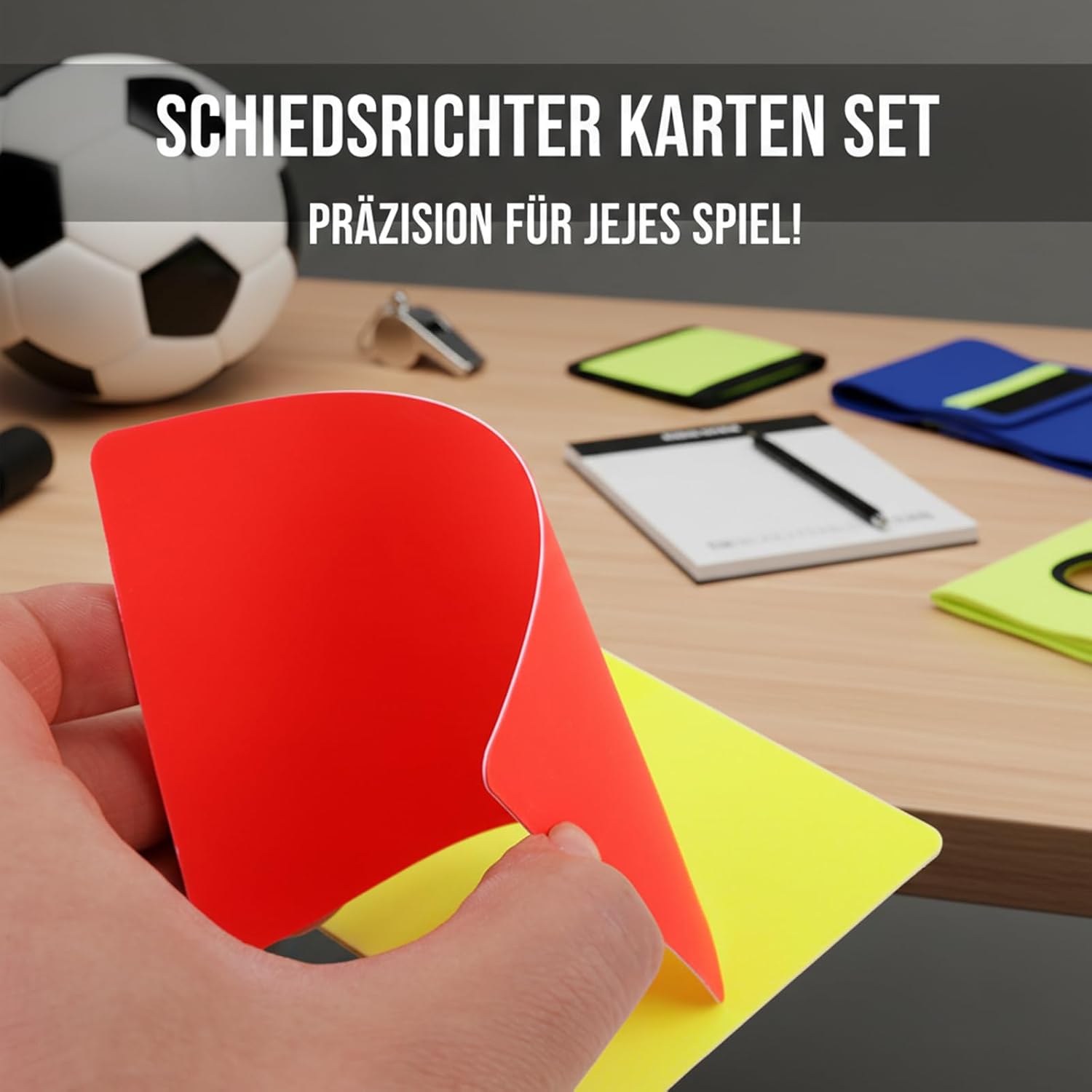 The Ebksqs referee kit is a professional and practical equipment suitable for anyone organising football matches - be it an official referee, a trainer in a training game or an organiser of club and amateur competitions. The set offers the most important devices in a compact and well-organised form. Package details: Red and Yellow Cards: The cards are the usual football sizes to ensure that players and spectators can see clearly even from a distance. Made of durable waterproof plastic that will not tear or fade easily even in bad weather or frequent use. The yellow card is a warning, the red card is a penalty. Metal whistle: the set contains a loud metal whistle. It produces penetrating, clear sounds that are clearly heard even in large squares and in noisy environments. Whistling is an essential tool to interrupt, start or resume a game. The included hanging rope is easily and safely accessible during the competition. Protective Case/Bag: A suitable protective cover prevents cards and whistles in the sports case from being dirty, moistened or damaged. It helps to store all items in one place and prevent loss. Some cases have a separate separation or a hanging ring for easy recording.