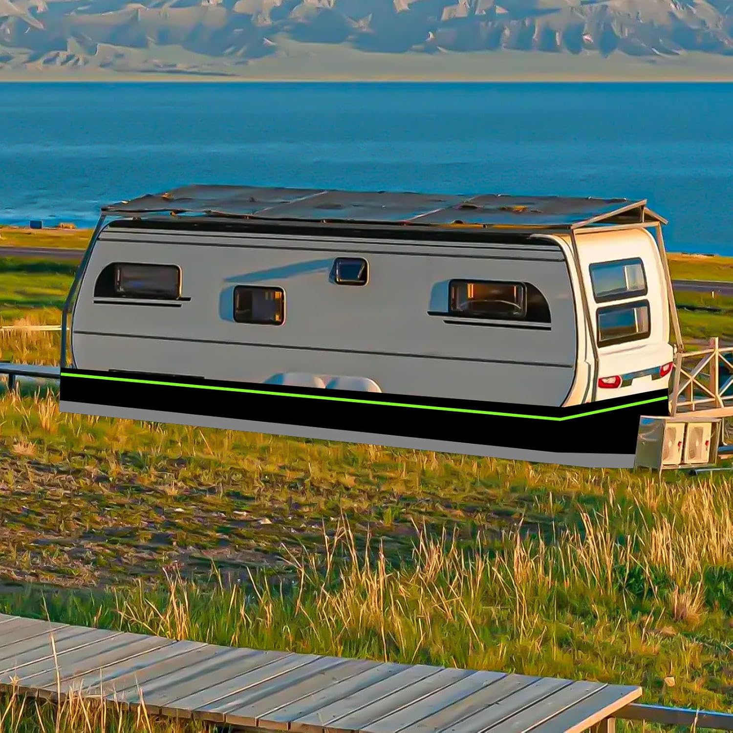 Designed to maintain a cool and clean underside for your RV, this premium skirting offers reliable protection whether you’re parked at a campground or a rest stop. Engineered for quick and straightforward installation, it helps shield your vehicle from debris, weather, keeping your RV in top condition season after season.To ensure the perfect fit, we recommend measuring the floor height and total length of your RV before ordering.Product Highlights:Material: Durable Polyester Fiber + Stainless SteelAvailable Lengths: 36ft, 39ft, 43ft, 46ft, 49ft, 52ft, 59ft, 65ft, 72ft, 78ft, 85ft, 92ft, 98ft, 105ft, 111ft, 118ft, 124ftColor: Sleek BlackAll-Season Use: Provides protection against snow, frost, wind, and dustUniversal Fit: Compatible with caravans, mobile homes, trailers, motorhomes, buses, 5th wheels, and other recreational vehiclesFeatures & Benefits:Reinforced with stainless steel plates and waterproof polyester fabricResistant to impacts, rocks, tumbleweeds, and other road debrisHelps improve insulation, potentially reducing energy costsLightweight yet rugged design for long-lasting performancePackage Includes:1 × RV SkirtingPlease Note:Slight variations in size may occur as dimensions are manually measured.