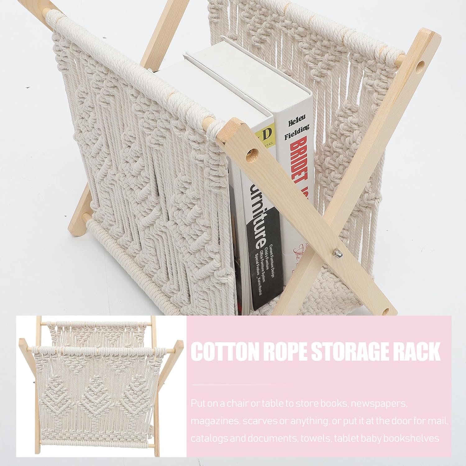 Package Include 1 x storage rack Characteristics - Material: Wood, cotton rope, iron - Size: 37.00X26.00X38.50cm;/14.54X10.22X15.13in; -Product Info:Cotton rope woven storage rack - Color: Beige - The stable structure and sturdy base ensure that your items are securely fixed in place to protect your items Rustic Woven Magazine Rack. - The simple design can be matched with any home style. It is also a simple and elegant desktop ornament rustic magazine holder. - Put on a chair or table to store books, newspapers, magazines, scarves or anything, or put it for mail, catalogs and documents, towels, tablet bookshelves magazine holder. - A simple solution for storing books, magazine or documents so that they are neatly stored without tipping over desktop magazine holder. - Crafted with material and creative Bohemian style, the storage rack is practical and decorative.Goods Informationmagazine storage is one of the for you.storage basket Are you looking for a , yet special storage rack? Are you in search of a sturdy, trustworthy tool that can do multiple jobs at once and work a long time for you? , ! Our special storage rack must meet your needs
