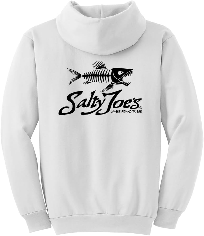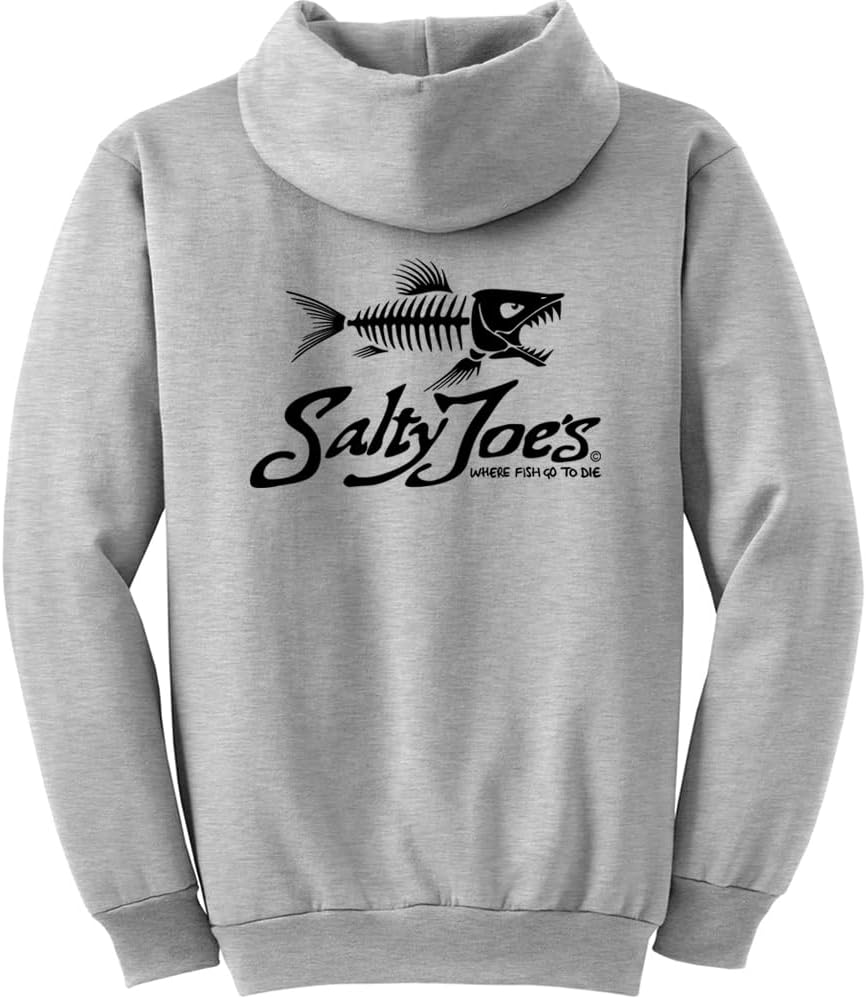 Looking for the perfect hoodie that's both stylish and functional? Look no further than Salty Joe's Men's Skeleton Fish Logo Pullover Hoodies. Made with ultimate comfort and durability in mind, this hoodie is ideal for anyone who loves being active outdoors or just relaxing at home. Featuring double-needle stitching at the waistband and cuffs, this hoodie is designed to withstand wear and tear. The double-lined hood with dyed-to-match drawcord offers an extra layer of protection against harsh elements while the 1x1 rib knit cuffs and waistband with spandex allow for easy movement and flexibility. Plus, with a front pouch pocket, you can keep your essentials close by or warm your hands on colder days. Our signature skeleton fish logo adds a touch of style to this practical design. Whether you're running errands or hitting the trails, trust in Salty Joe's quality craftsmanship and attention to detail.