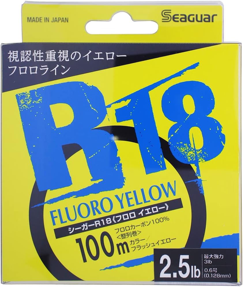 KUREHA / Clehashigar R18 Fluoro Yellow 2.5lb-5lb 100m◆Test lb: 2.5lb/3lb/4lb/5lb◆Max Strong (lb): 3(2.5lb)/4(3lb)/5(4lb)/6(5lb)◆Dia.mm: 0.128(2.5lb)/0.148lb)/0lb/3lb/048lb )/0.16 5(4lb)/0.185(5lb); Reference pattern: 0.6(2.5lb)/0.8(3lb)/1(4lb)/1.2(5lb) Seager R18 Fluoro Yellow Seager R18 Fluoro Yellow Mark High Visibility to detect line changes High visibility in a wide range of situations, such as riding games, trout games, etc.