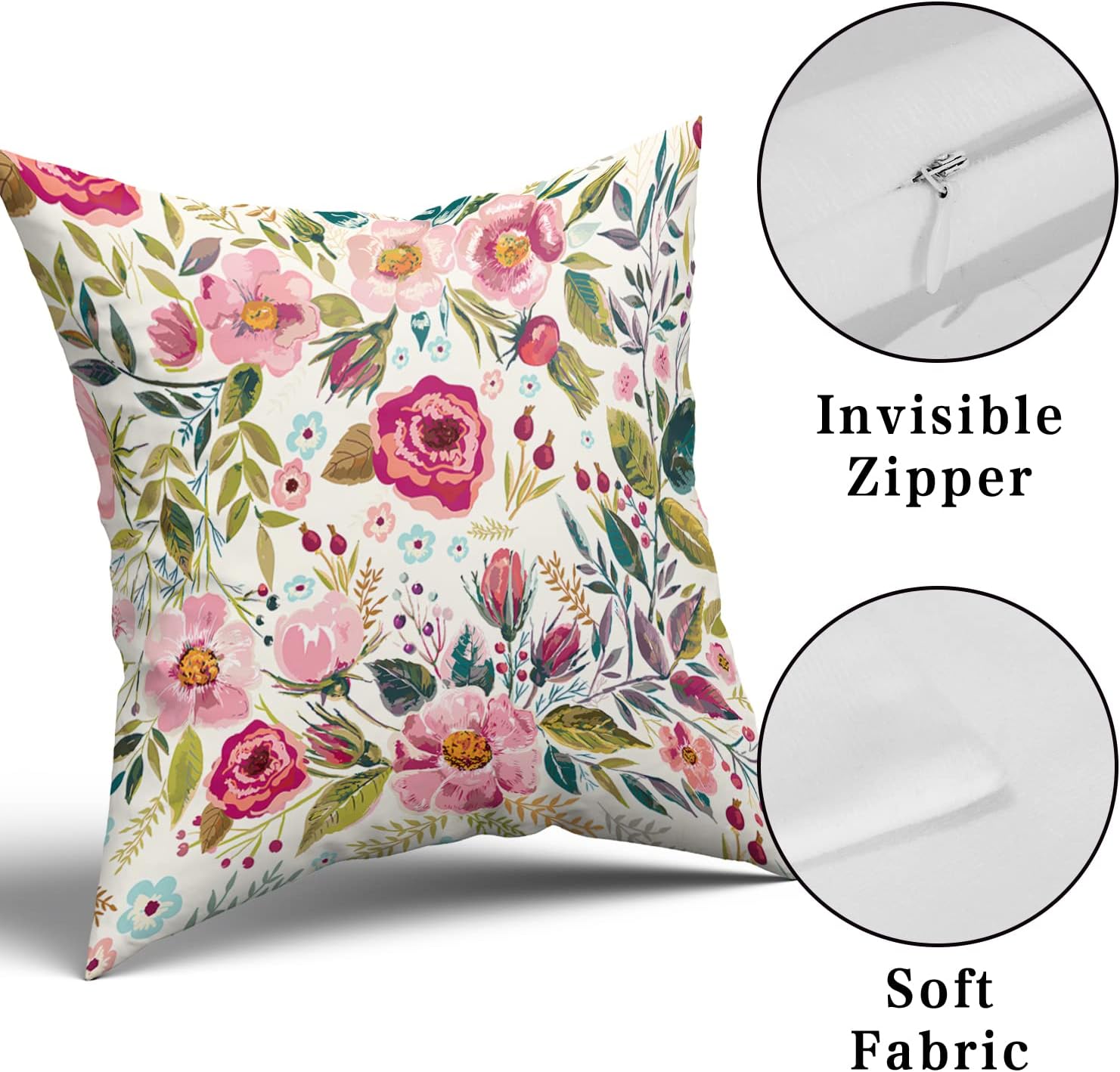 Hot Pink Floras With Green Leaves Girly Decorative Pillow CoversThis pillowcase is almost a work of art, delicate and distinct, more than just a home decoration.To provide you with the most creative and tasteful pillow cover is our goal. It's our pleasure that you like it.❤Material Properties✔Our high-quality material is processed to protect against any shrinkage after washing. More durable than normal fabric.✔The smooth stitching is not easy to unravel, and the fabric is not deformed and pilling.✔There is no peculiar smell. Non-toxic and safe.The summer throw pillow covers are perfect home decorations for living room, bedroom, office, party, and outdoor gardens. You can put these spring pillow covers on the couch, sofa, bed, patio furniture, or car, and create the perfect holiday decoration.❤Washing Instructions✔Hand Or Machine Wash Cold Separately;✔Gently Cycle Only;✔Tumble Dry On Low;✔Dot Not Bleach;✔Do Not Iron;❤Please Notice✔PILLOW COVER ONLY, NO PILLOW INSERTS.✔There may be a slight color difference due to different monitors.✔As a result of manual production, sewing, and cutting will inevitably occur 1-2CM deviation.Please contact us if you have any questions about our products, we will reply to you within 24 hours.Thanks visit our shop and have a nice shopping time!