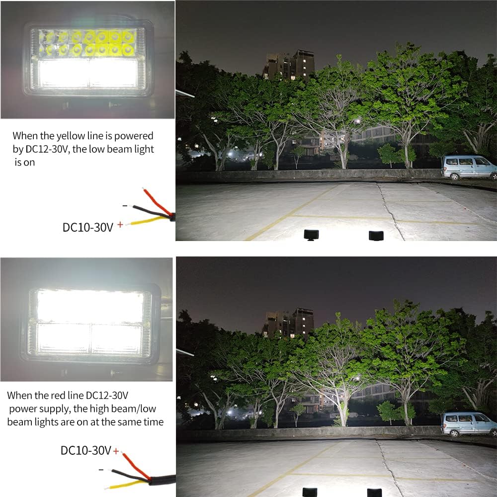 Item: led tractor lightsSize: Approx 6 inchOperate Voltage: DC 10-30VLED Power: about 40W each lights, about 80W each pair lightsBrightness: about 4000 lm each lights, about 8000 lm each pair lightsBeam: Spot beam & Flood beamLights color: WhiteColor Temperature: 6000±200kLamp shell color: all black Shell profile: die-cast aluminum alloyLens Material: Optical PC lensLens Type: New Electroplated Reflector Lens Waterproof rate: IP67WorkingTemperature: -40 ~ 85 degree Celsius Working life: more than 50,000 hoursInterface-3 line interface:The black line is negative (Connect the power negative or bypass)Red positive strong beam (The near and far lights turn on at the same time)Yellow positive low beam (Control the near-light)Product includes:2X LED tractor lights2X Installation screws and nutsNote :1: Manual measuring, please allow 1 ~ 3mm error,thank you.2: Due to the difference between different monitors, the picture may not reflect the actual color of the item. We guarantee the style is the same as shown in the picture.3: Please match the wiring hardness with correct operating voltage.