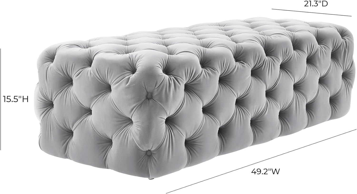 The Kaylee Collection from TOV Furniture provides a line of living room ottomans that feature a classic style that elicits thoughts of modern elegance and grace. The supremely soft velvet and endlessly deep tufting of our Kaylee jumbo ottoman will take center stage in any room. The deep button tufts and solid wood frame present style and comfort that everyone will enjoy for years to come. Available in blue, grey, green and black velvet options. This jumbo ottoman measures 49.2"W x 21.3"D x 16.1"H and weighs 33.4lbs to perfectly fit a variety of spaces in your home. This piece comes fully assembled to your home for your convenience. TOV Furniture is led by formidable industry veterans with unique insights and nearly two decades of experience in every phase of the business. They are committed to efficiency and customer satisfaction, while taking great pride in a design team that doesn't merely create cutting edge designs, but actually sets new fashion trends and strives for the perfect balance between style, comfort quality and price.