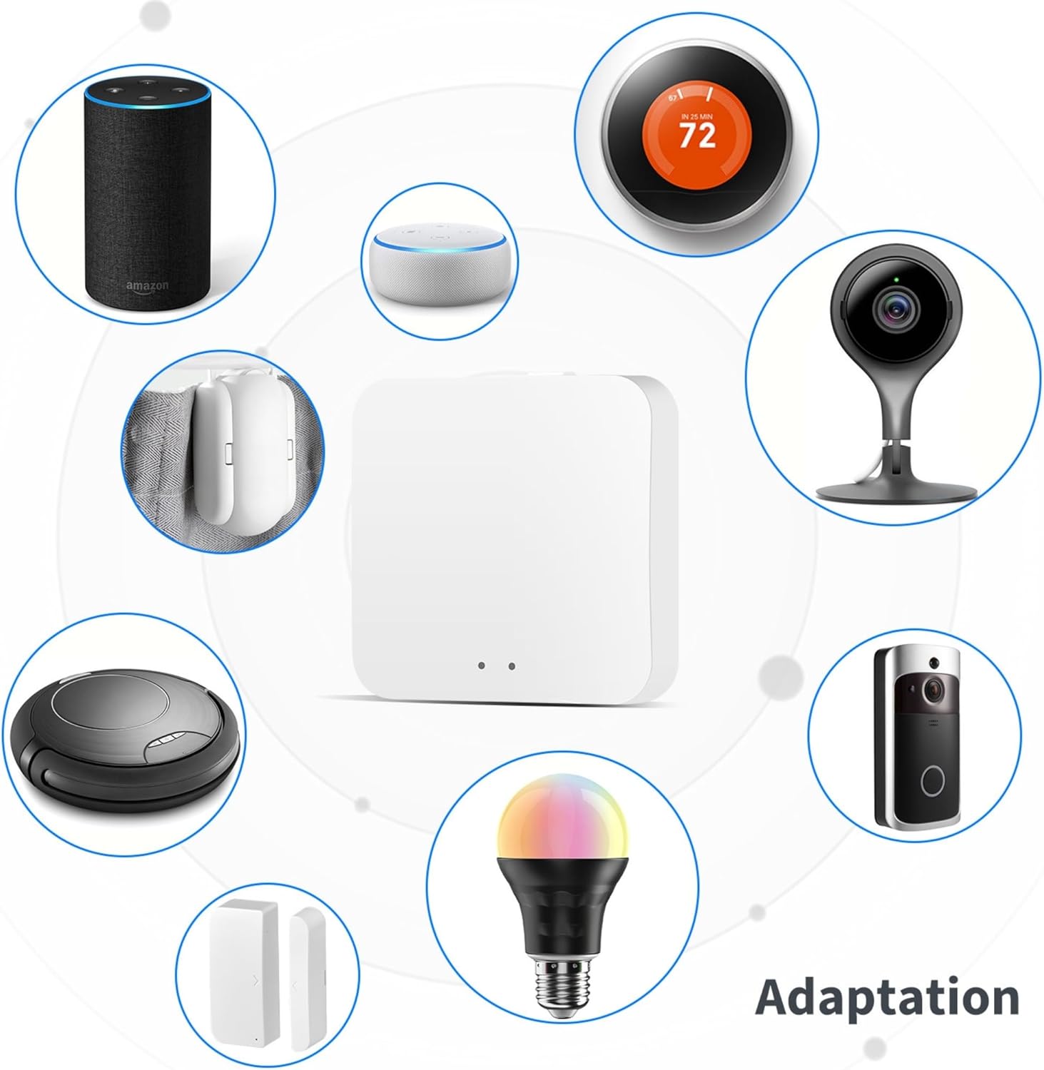 Features:● More stable create a smart home system.Zigbee solution will be more stable than wifi solution, and can connect with many smart home devices.● More safe and easy to control smart device on the APP.Gateway transmission via zigbee solution, will be more faster between gateway and smart device.● Scene LinkageSupport various smart devices access to create rich intelligent scenes.The gateway connects zigbee devices, allowing smart switches, electric curtains and various types of sensor devices to access the app scene linkage, easily creating the smart home life you want.✔ Access smart switches to create smart lighting.Gateway with smart switch, you can create scenes with multiple lights according to your usage habits, and control different lights with one click to easily create the desired lighting atmosphere.✔ Access to motorized curtains to create smart curtains.Gateway with motorized curtains, remotely close the curtains to avoid the room being exposed to the sun, you can also set the timing to let the curtains fixed open and light, enjoy the sunshine.Parameter:Product Name: Wireless zigbee smart gatewayWorking Temperature: -10℃~55℃Working humidity: 10%~90%RH(no condensation)Wireless technology: Zigbee 3.0Net weight: 50g