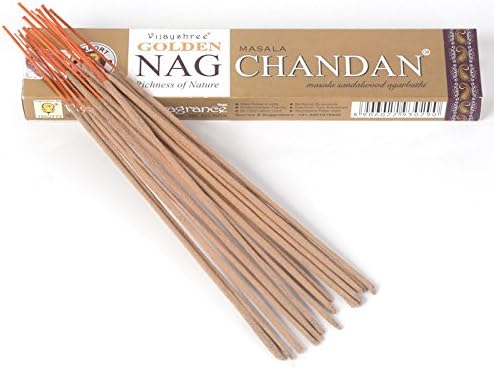 This listing is for 12 x 15 gram boxes of Vijayshree GOLDEN NAG CHANDAN [Sandalwood] INCENSE STICKS. Each box contains approx. fifteen 8.5" inch sticks, which burn for around 40 minutes each, depending on conditions. The finest spices, herbs, floral extracts and exotic oils have been skillfully blended for their positive influence. This incense resonates with the rich scent of Sandalwood.