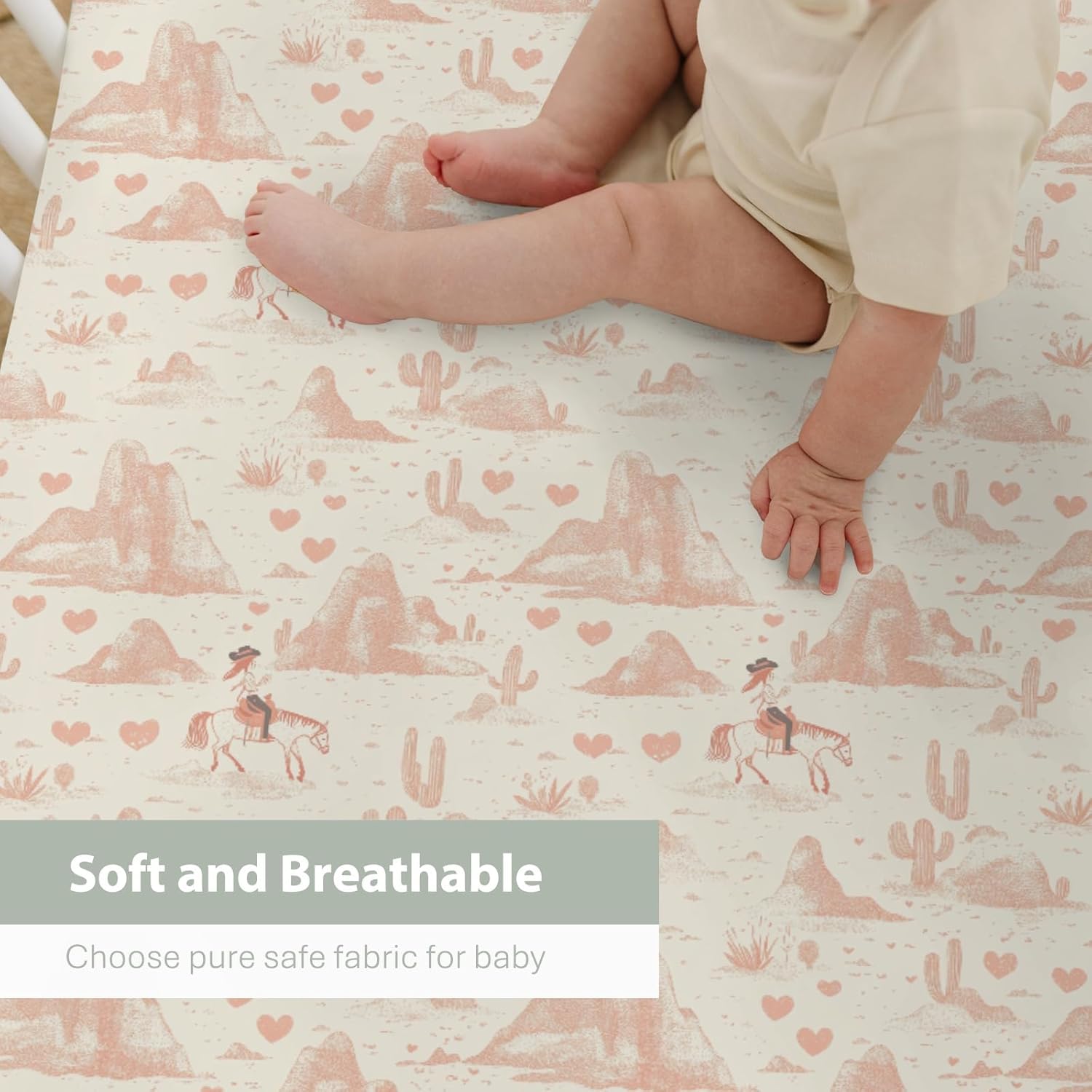 With various cute prints, our crib sheets are perfect for any nursery theme. You can choose to match the different decoration of the room. These crib sheets create a cozy, secure sleep environment, promoting better sleep while blending with your decor. Crafted for both boys and girls, these sheets are a practical choice, ensuring better sleep for your baby day or night. Material: Our crib sheet is made of ultra soft silky polyester, carefully selected fabrics for baby, which is super soft, comfortable, and breathable, let your baby sleep peacefully all night long. Perfect Size & Snug Fit: Measuring 28 by 52 inches with 9 inches deep pocket and whole elastic bandage surround, our crib sheets can perfectly fit standard crib mattress or toddler mattress up to 9 inches. A whole strong elastic band at the bottom help keep the sheet stay flat right in place securely and snugly to create a safe and comfortable sleep environment for babies. Great Gift Idea: A practical and thoughtful gift for the baby shower, newborn, baby registry, birthday, Christmas, or any other special gift-giving occasion. Wash Instructions: These baby crib sheets are fade resistant and machine washable for easy care. Simply place them in the washing machine, set them on a gentle cycle with cold water and dry them on low heat or line dry.