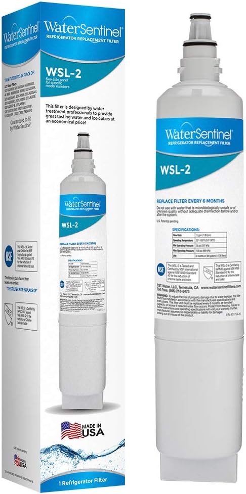 Product Description Filter Fits: LG Filters: 5231JA2006B, 5231JA2006A, 04609990000, 46-9990, 4609990000, 469990, 5231JA2005A, 5231JA2005A-S, 5231JA2006, 5231JA2006A-S, 5231JA2006B-S, 5231JA2006E, 5231JA2006F, 5231JA2006F-S, 5231JA2006H, 5231JJ2001C9990, 9990P CLS30320001, CLS3032001, LT600, LT600P, PS2441842 Guaranteed by WaterSentinel From the Manufacturer This premium WaterSentinel replacement refrigerator water filter contains a 0.5 micron coconut shell compressed carbon block which provides tremendous capacity to reduce impurities that may be present in your drinking water. The carbon block has millions of active sites on its surface and within the structure which can absorb impurities like a sponge, and can adsorb and hold other types of impurities on its surface like a magnet. Additionally, this filter can catalytically breakdown other impurities very similar to the way a catalytic converter works in your automobile. These processes ensure that you are getting the cleanest and best tasting water possible. WQA Gold Seal Certified to NSF Standard 42 to ensure compliance with industry safety and structural standards, this filter will reduce sand, silt, sediment, rust, chlorine taste and odor and other contaminants that may be in your water. Proudly manufactured in USA, this high quality economical filter will provide crisp, clear and clean drinking water and ice cubes for you and your family. Filter is backed by the WaterSentinel 90 Day Money back Guarantee