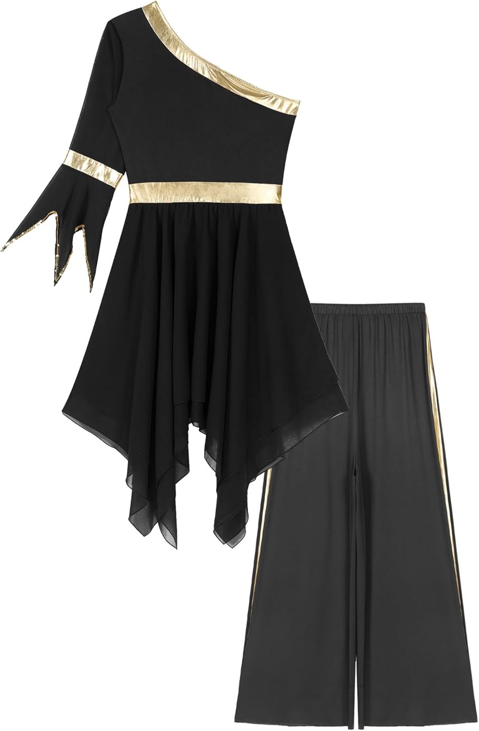 Set Include: 1Pc Dance Dress, 1x Pants Condition: New without tag Material: 60% Chiffon, 40% Polyester Tag No.---|---Recommended Size---|---Dress Length---|-------Chest-------|--------Dress Waist--------|-------Sleeve------|---Pants Length---|------Pants Waist-----|-------Hip---- ---S------|-----------S----------|----40.5"/104cm---|-----30.5"/78cm----|-----25"-36"/63.5-92cm-----|------20"/51cm-----|-----39"/100cm----|----24"-37"/62-95cm---|----43"/110cm- ---M------|-----------M----------|----55.5"/141cm---|---32.5"/83.01cm---|----27"-38"/68.5-96.59cm---|---21.5"/54.59cm---|----40"/101.5cm---|---26"-39"/67-100cm---|---45.5"/116cm ---L------|-----------L----------|----56.5"/144cm---|---34.5"/88.01cm---|---29"-40"/73.5-101.59cm---|----22"/55.59cm----|----40"/101.5cm---|---26"-39"/67-100cm---|---45.5"/116cm ---XL-----|----------XL----------|----57.5"/147cm---|---36.5"/93.01cm---|---31"-42"/78.5-106.59cm---|----22"/56.59cm----|----40.5"/103cm---|---28"-41"/72-105cm---|----48"/122cm- --XXL-----|----------XXL---------|-----59"/150cm----|---38.5"/98.01cm---|---33"-44"/83.5-111.59cm---|---22.5"/57.59cm---|----40.5"/103cm---|---28"-41"/72-105cm---|----48"/122cm-